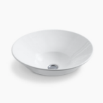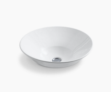 Cuba de Apoio Redonda 41cm Conical Bell Kohler imagem ilustrativa, não acompanha válvula Fabricada em louça sanitária branca, esta Cuba de Apoio Redonda da Kohler é uma peça que combina beleza e funcionalidade. Sem ladrão e sem furos para torneiras ou misturadores, esta cuba apresenta um design arrojado que se destaca em qualquer ambiente. Com o design característico Conical Bell®, é uma escolha que reflete elegância.