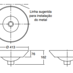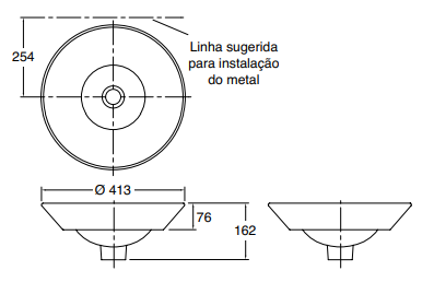Características: Cuba de apoio fabricada em louça sanitária Design arredondado Sem ladrão Design Conical Bell® Without overflow Conical Bell® design Diâmetro de 413mm